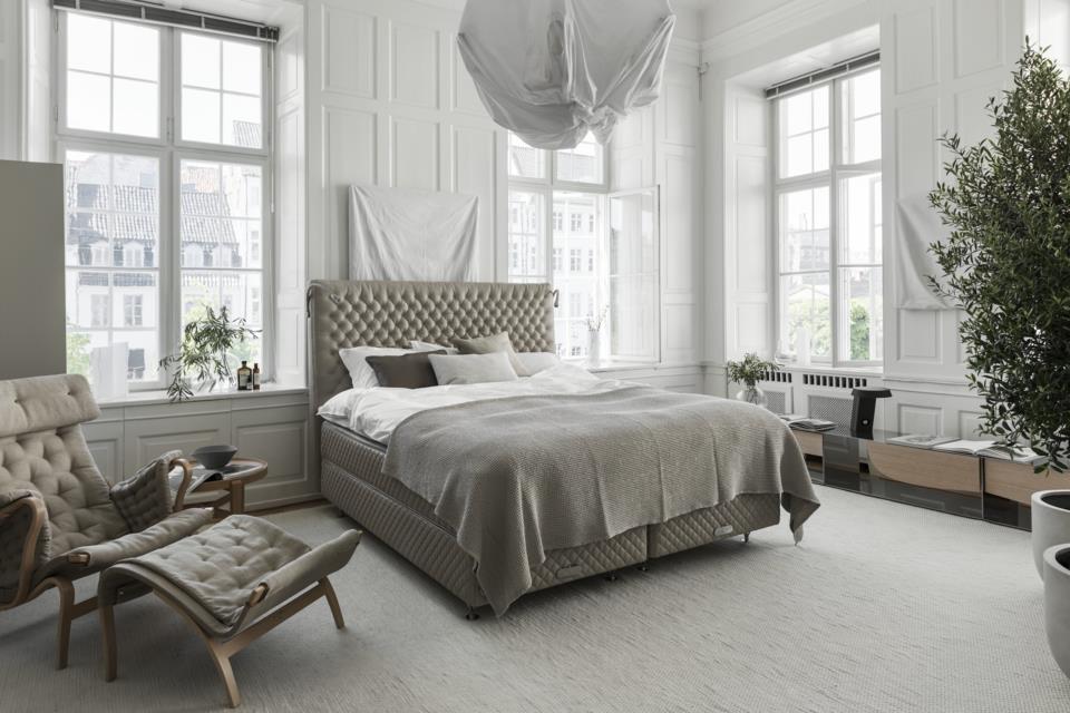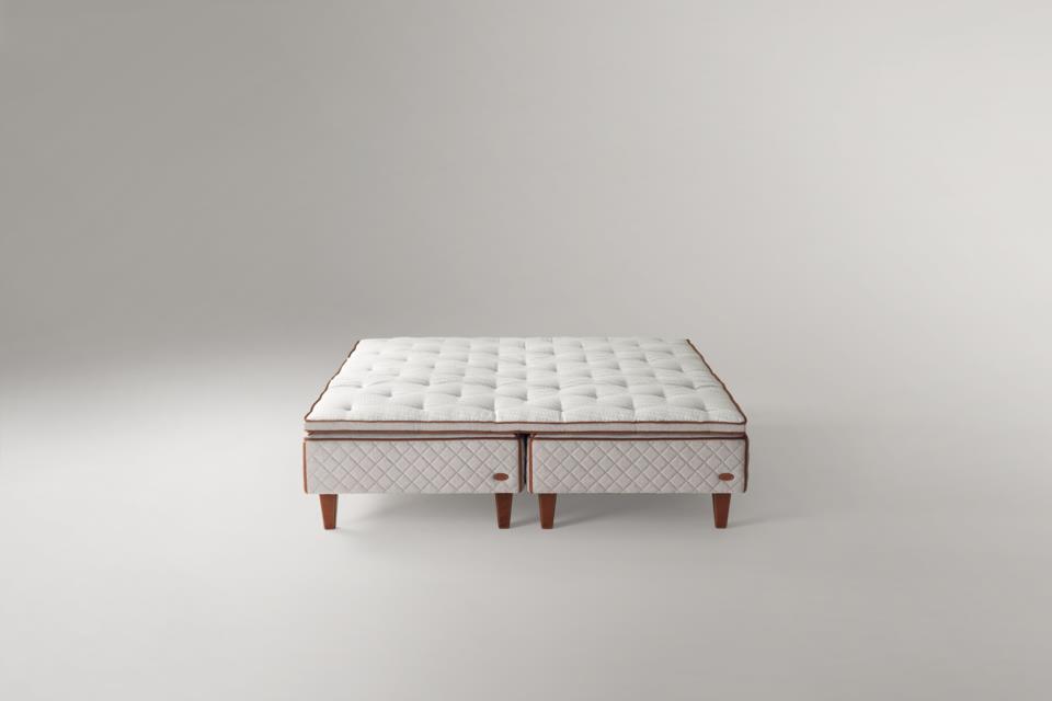 다이내믹한 이중 레이어 스프링 구조를 갖춘 하이 프레임 DUX 침대의 전설적인 편안함.