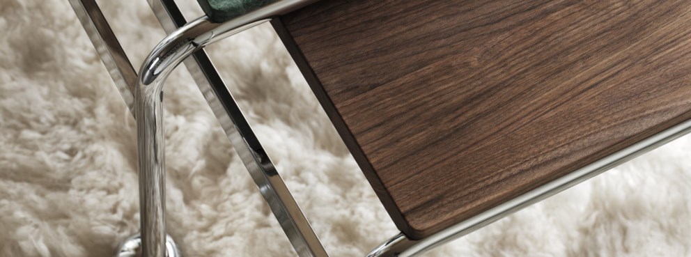Bruno Mathsson의 클래식 의자와 함께 디자인된 오리지널 테이블을 기반으로 한 이 옵션은 가장 넓은 표면 공간을 제공하면서도 Karin 컬렉션과 동일한 우아한 미학을 제공합니다. 크롬 도금 프레임에 고급 대리석, 석회석, 월넛으로 제작한 탑을 올렸습니다.